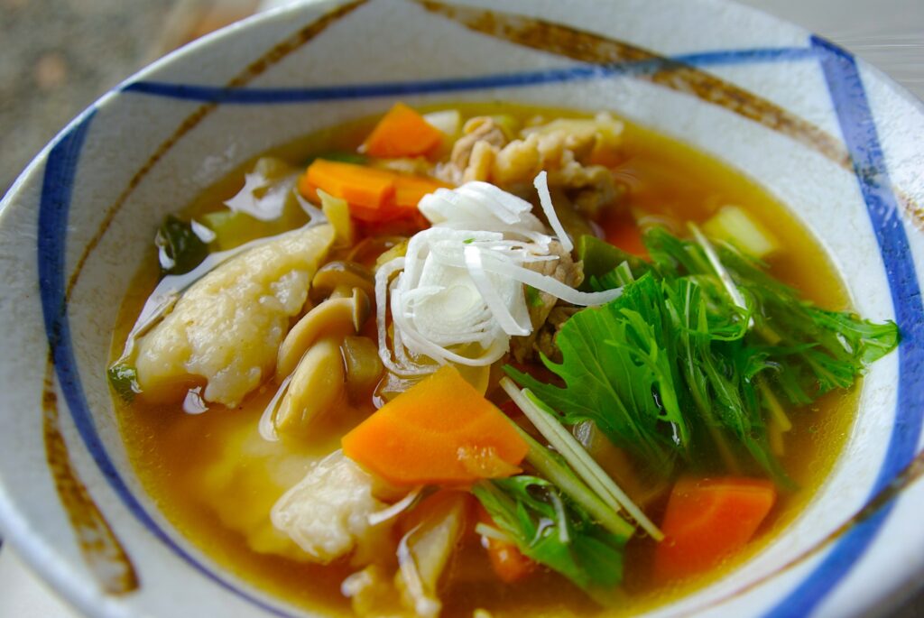 いわゆる「すいとん」ですが、練った小麦粉を「つみとる」の方言からその名が付けられました。