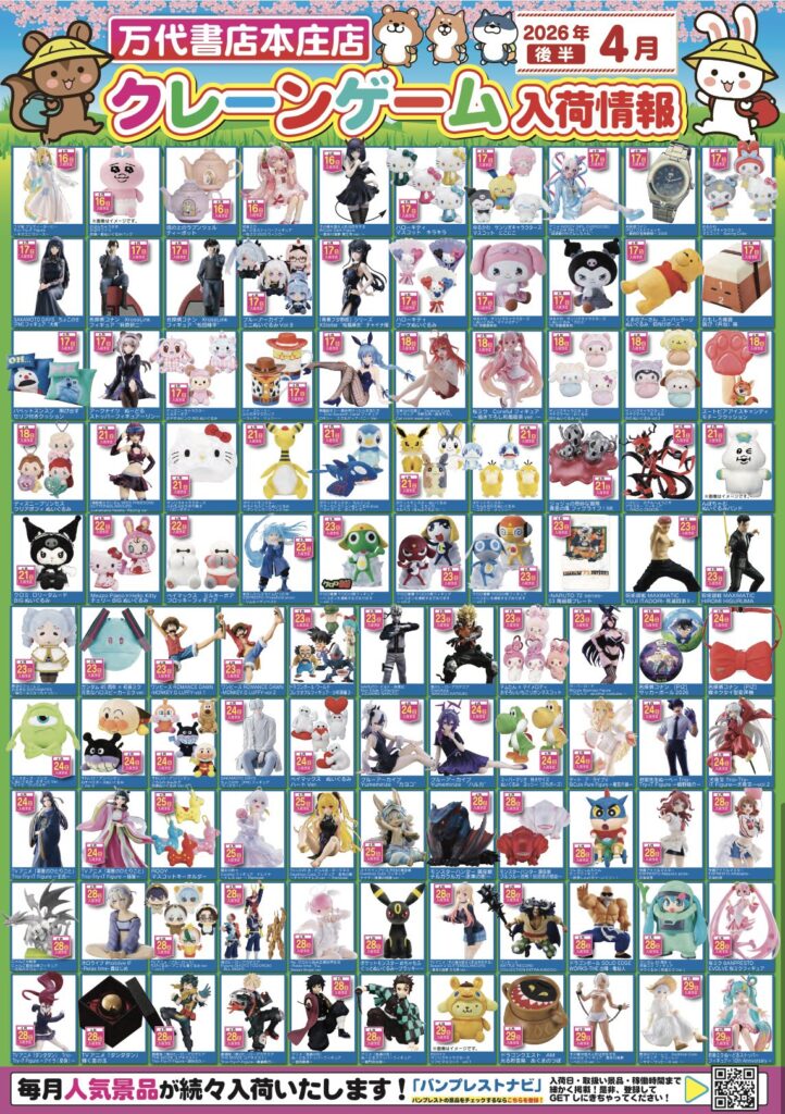 2026年4月クレーンゲーム入荷フィギュアリスト