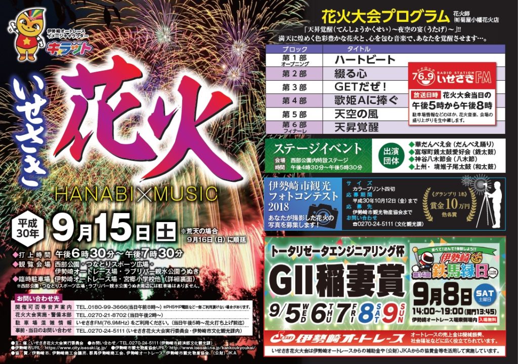 また、花火大会当日は群馬県伊勢崎市を拠点としているコミュニティラジオ放送局「いせさきFM」で、午後4時~花火打ち上げ前まで駐車場情報を放送し、その後花火大会を生中継するみたいです👀↓