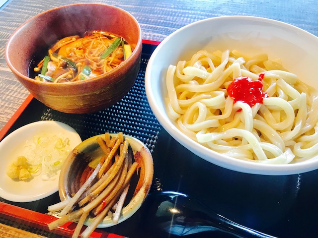 ▲自家製辛味噌(じゃんがら味噌)を絡めたうどん。これだけでも美味しそうな雰囲気✨