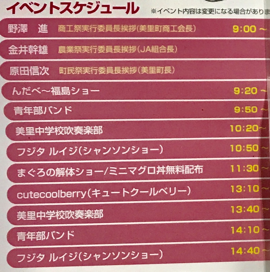 ▲イベントでは「美里町中学校吹奏楽部」や「青年部バンド」の演奏、「まぐろの解体ショー」など様々なイベントが開催される模様。