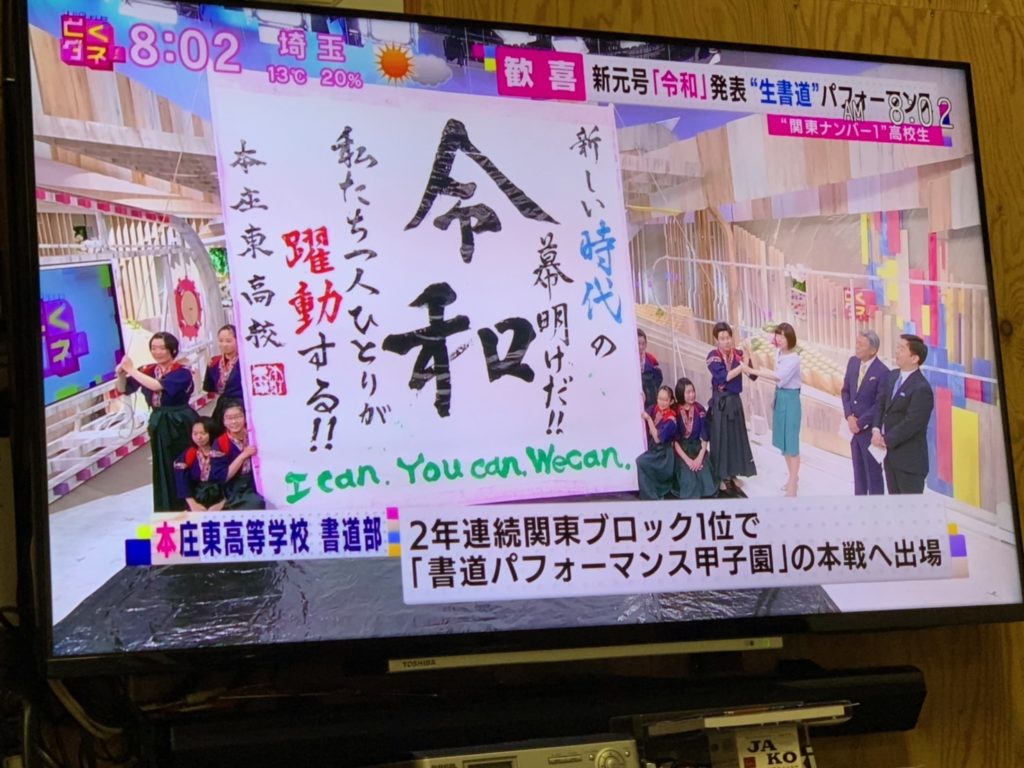 番組では新元号の「令和」をスタジオで生書道パフォーマンス!