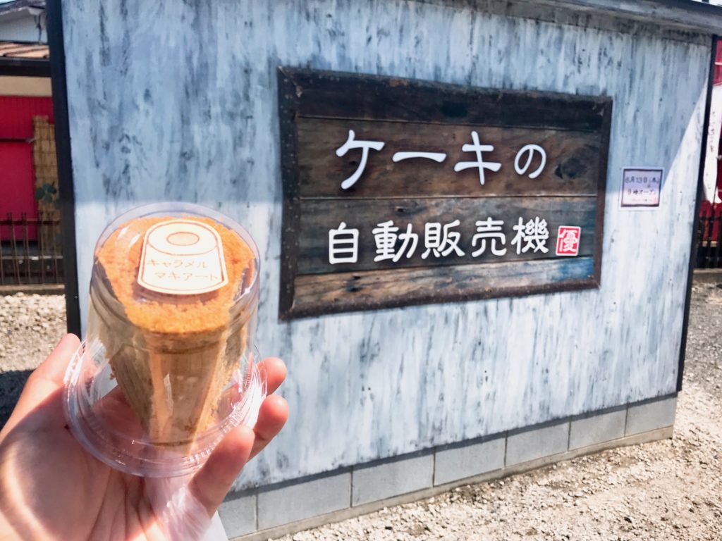 ▲シフォンケーキの自販機とドリンクの自販機が1台ずつ設置されています💡
