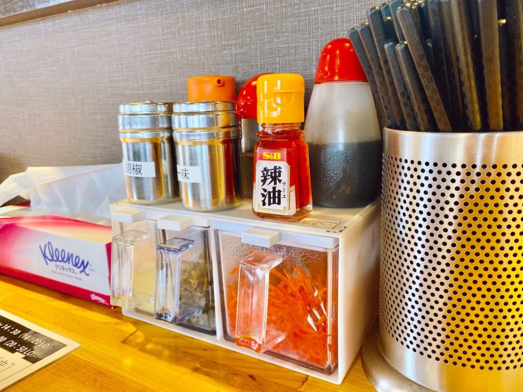 ▲無料トッピングの紅ショウガと高菜を入れてみたところ…