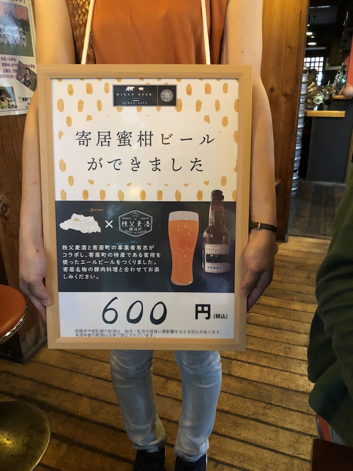 そんな想いを抱いていた寄居町内の事業者有志が「寄居のビールをつくる会」を結成し、2017年に秩父市で誕生したマイクロブルワリー「秩父麦酒」とコラボし、寄居町オリジナルのビール「寄居蜜柑ビール」を開発したそうです🍻