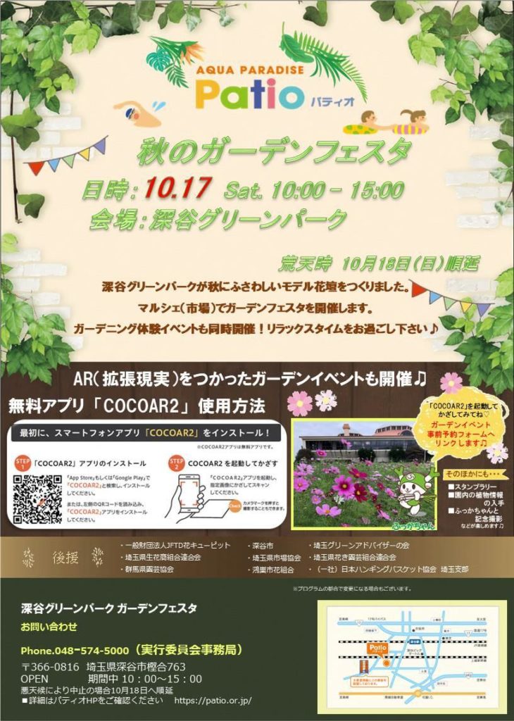 深谷グリーンパーク・パティオ 特設会場で「秋のガーデンフェスタ」が開催されるみたいです。