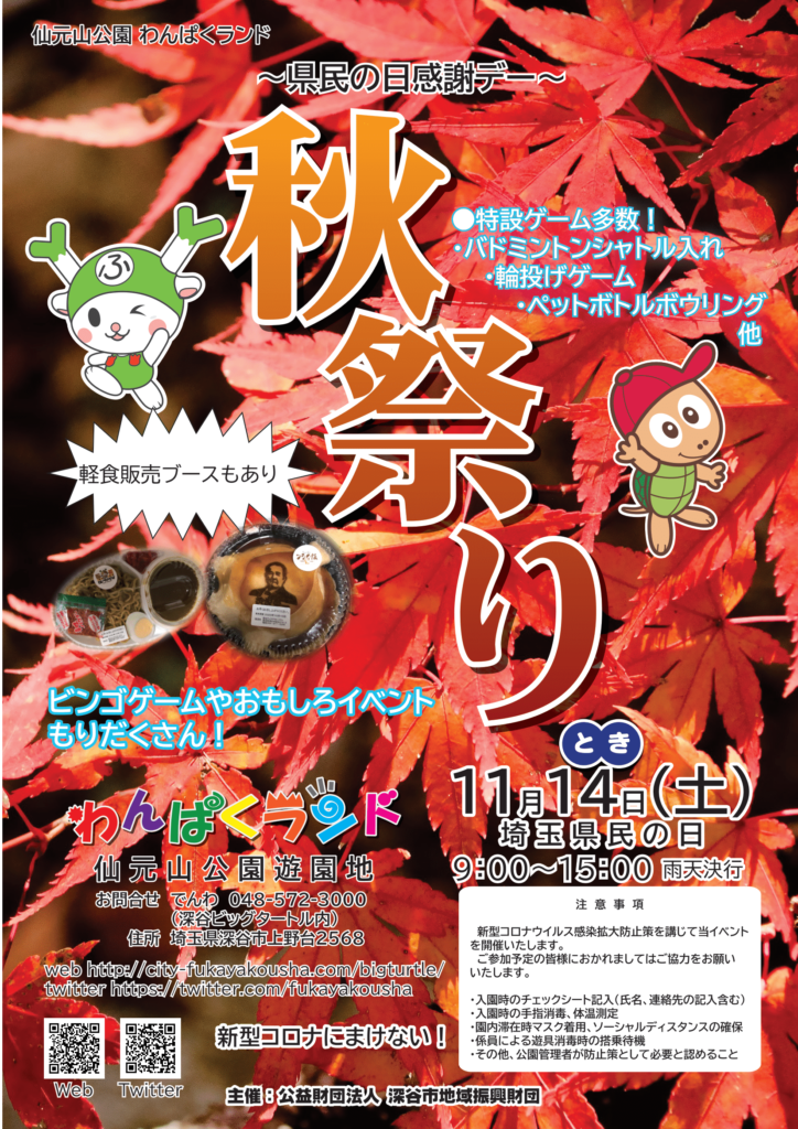 深谷市上野台にある「仙元山公園遊園地」で『わんぱくランド秋まつり』が開催されるみたいです。