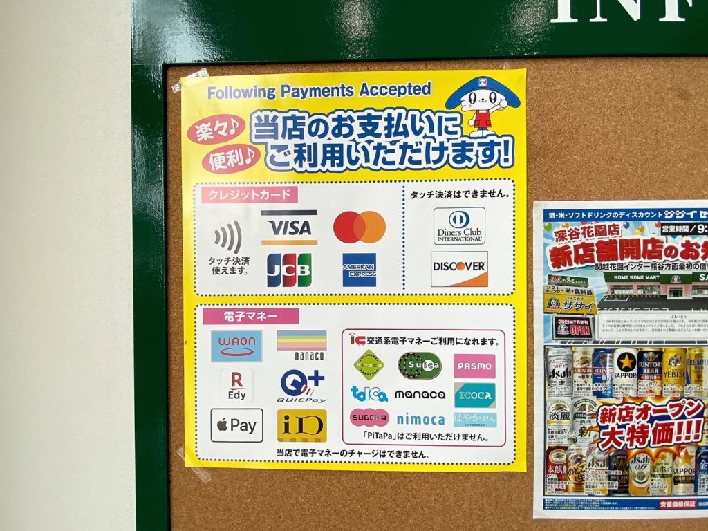 ▲現金以外にも各種クレジットカードや電子マネーが利用できます💰