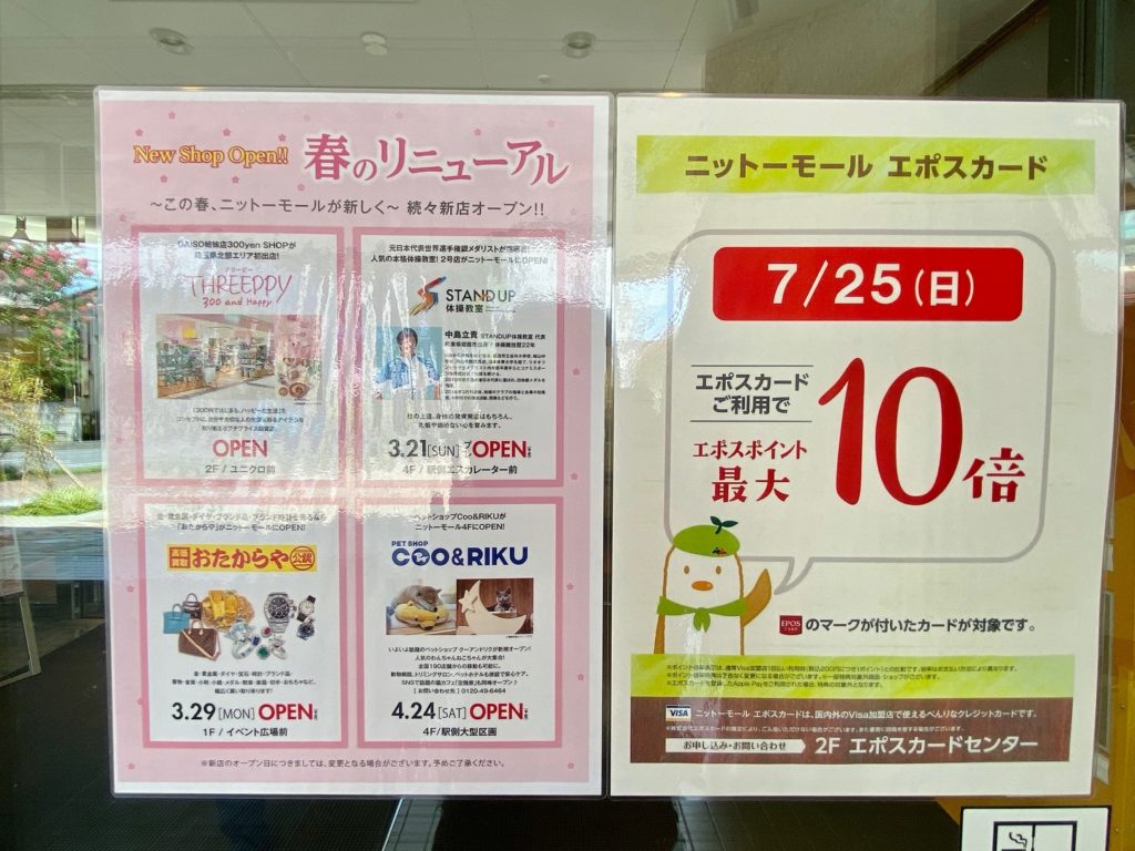 ▲ニットモールでは、先日記事にした「THREEPY(スリーピー)」「STAND UP体操教室」などがオープンしています💡
