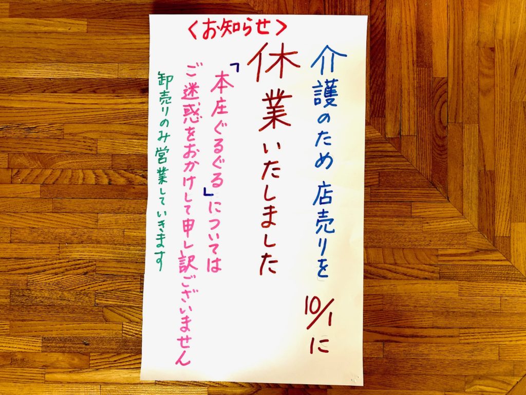 ▲ご家族の介護のため10月1日(金)をもって店売りを休業するそうです。(今後は卸売りのみの営業となるようです)