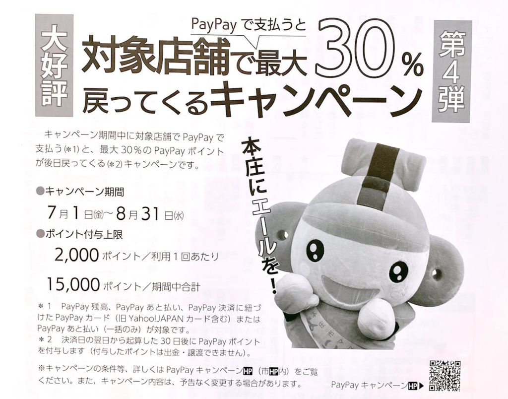 本庄市とPayPayの第4回コラボキャンペーンが開催されるみたい。最大30%が戻ってくるって!7/1(金)〜※追記あり