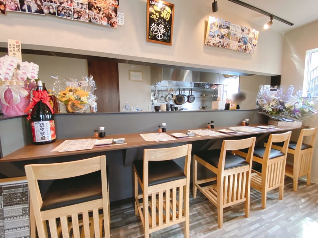 ▲入口近くにカウンター席、店舗奥にテーブル席があります。