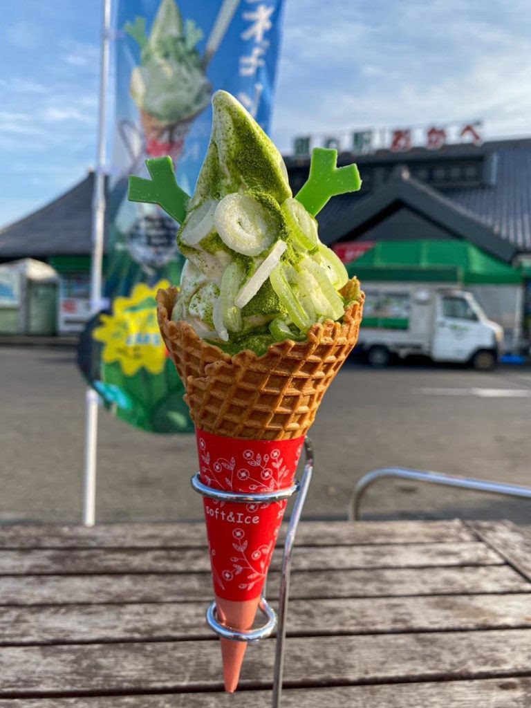 深谷ネギソフト」は、2023年4月28日(金)に「道の駅おかべ」内にある「ふるさと物産センター」で発売がスタートしたご当地スイーツです🍦