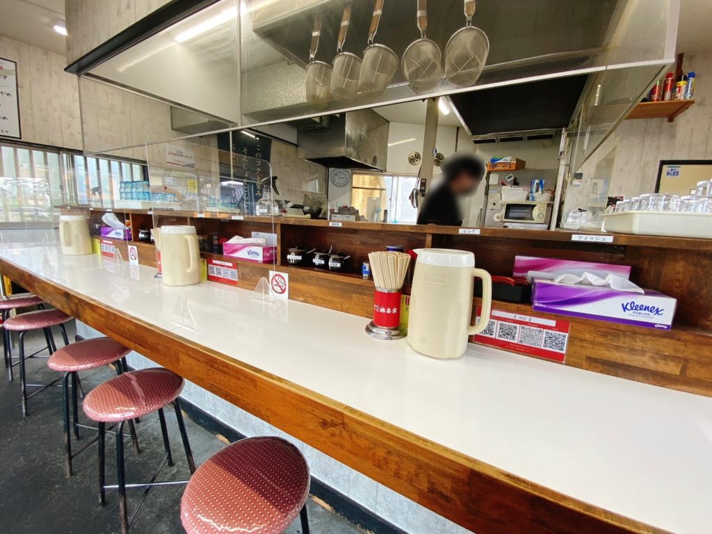 ▲カウンターには「家系らーめん」「薬味」「堀内英海氏」の解説が掲載されています。