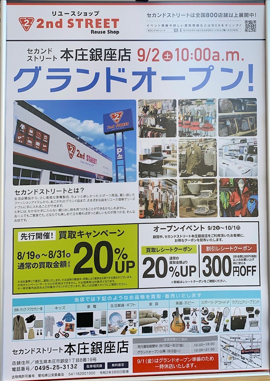 「セカンドストリート本庄銀座店」がグランドオープンするみたいです。