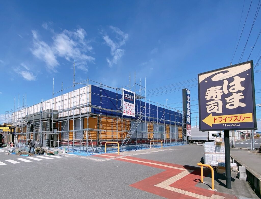 本庄市本庄にある「はま寿司 本庄店」がリニューアルに伴い一時休業しています。