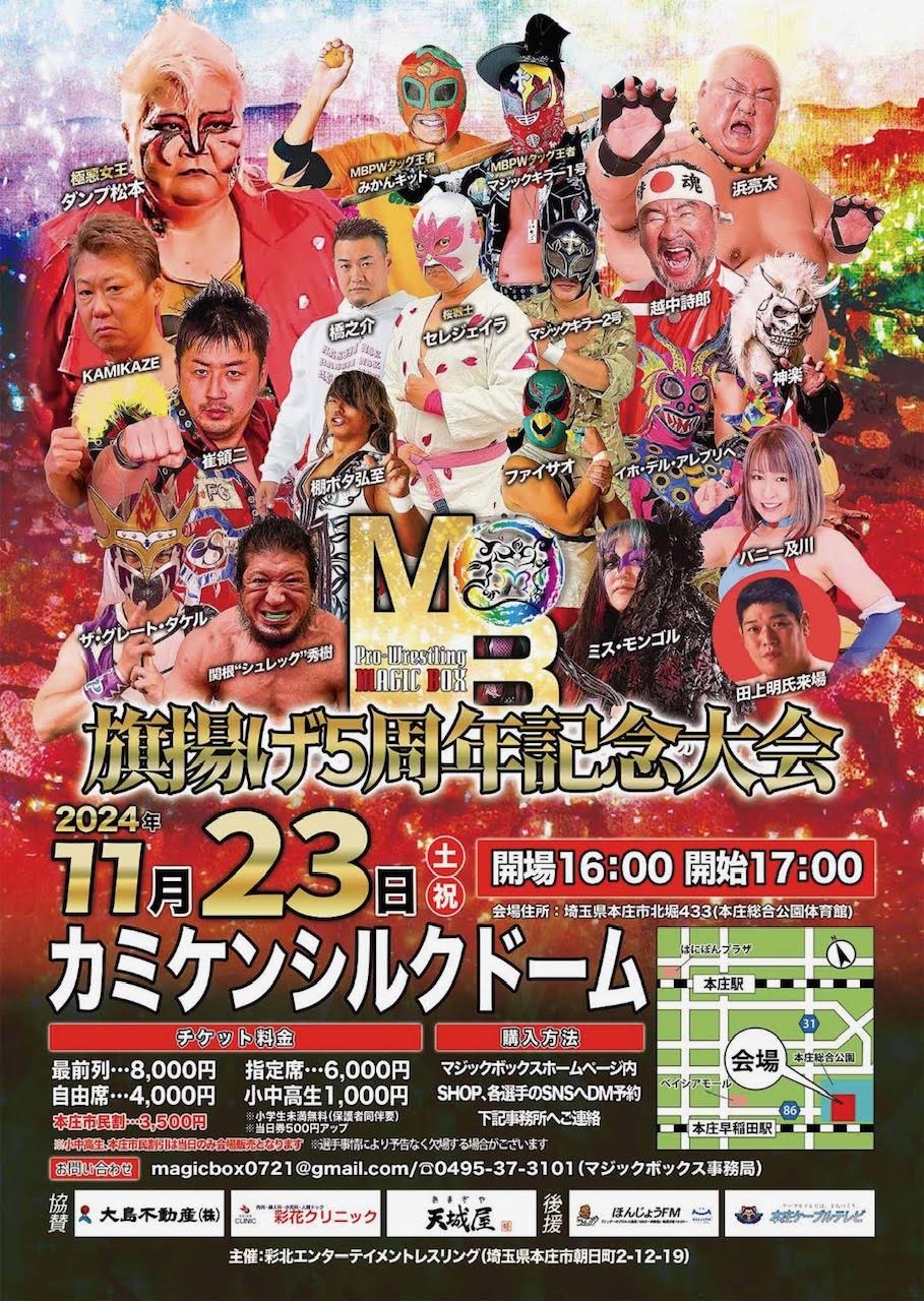 地域密着型エンターテイメントプロレスリング『MAGIC BOX(マジックボックス)』が、「カミケンシルクドーム」で「マジックボックス5周年記念興行」を開催します✨
