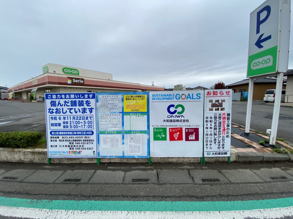 コープ深谷店前の県道14号線が道路舗装工事のため少しの間片側交互通行になるみたいです。