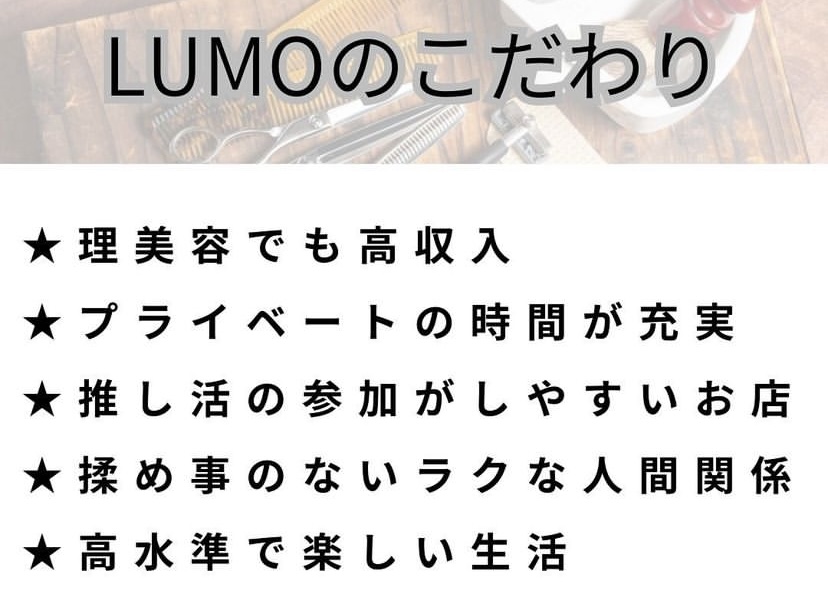 LUMO」なら あなたの大事な時間を費やして培った理美容の技術をそのまま活かせます!