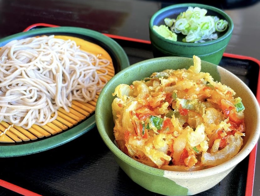 ▲野菜と小エビの大きなかき揚げとお蕎麦のセットで、お蕎麦は【温・冷】から選べます✨