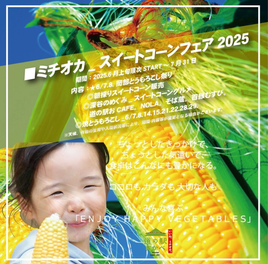 深谷市岡にある「道の駅おかべ」では、埼玉県内最大級のとうもろこしフェア「\いいね、モロコシ。/スイートコーンフェア2025」が開催中です🌽