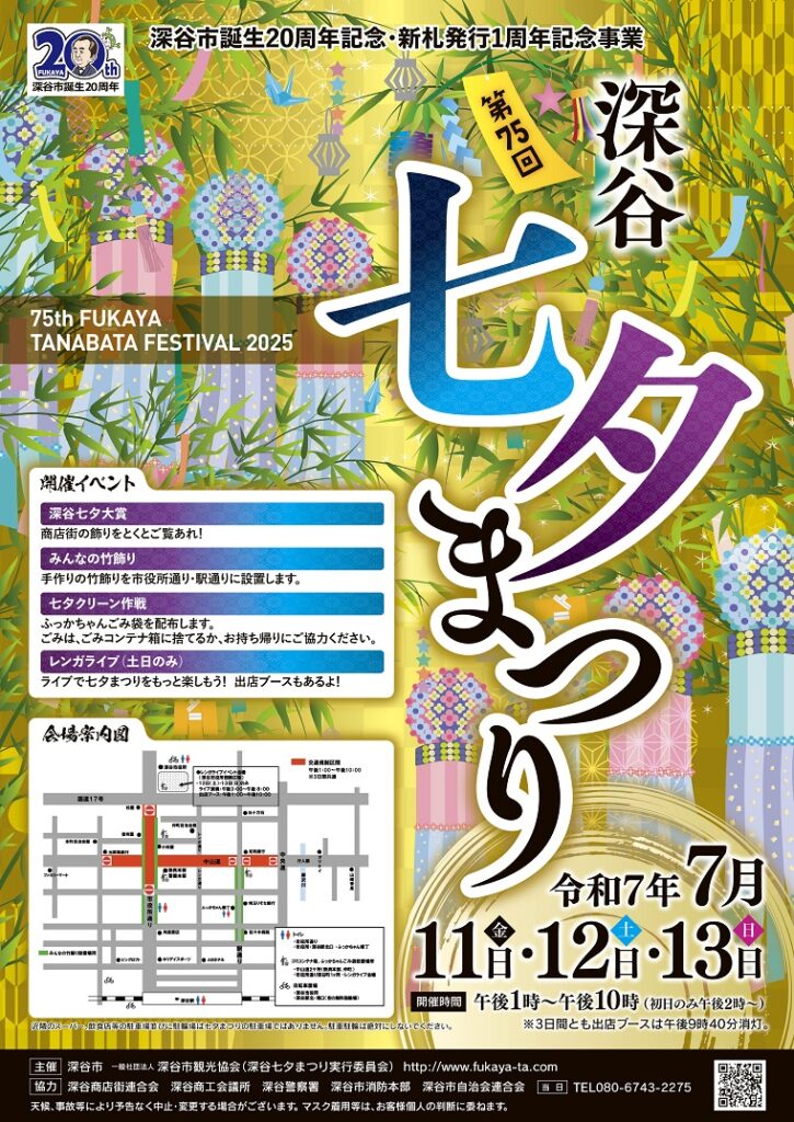 7月11日(金)〜13日(日)は「第75回 深谷七夕まつり」が開催されるよ!交通規制情報などはコチラ。