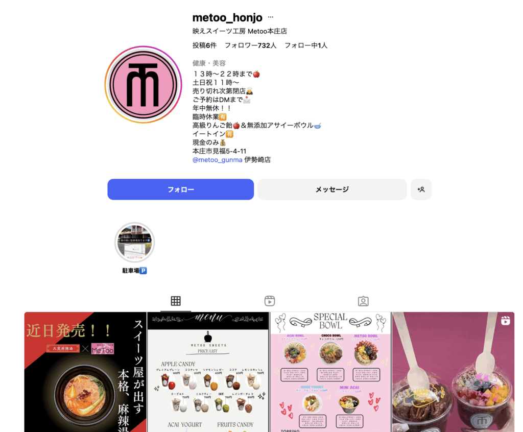 本庄市見福にある「映えスイーツ工房 Metoo本庄店」