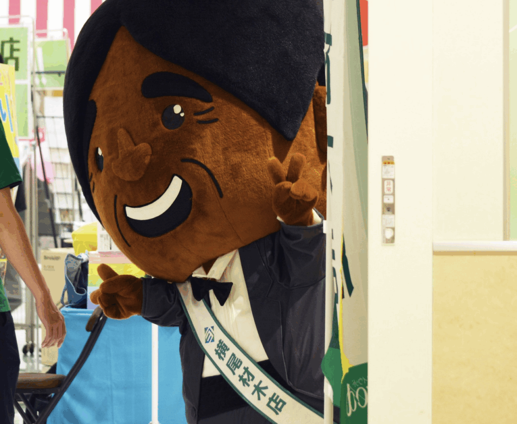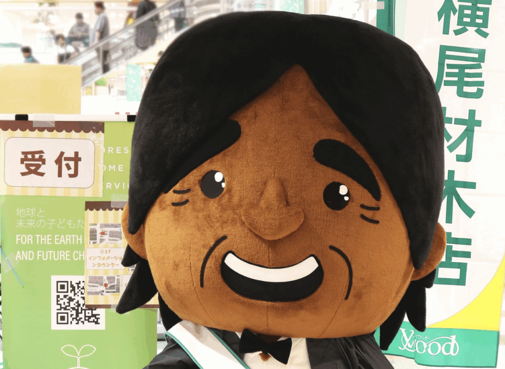 「横尾材木店」のゆるキャラ「しげるん」ですクロ〜