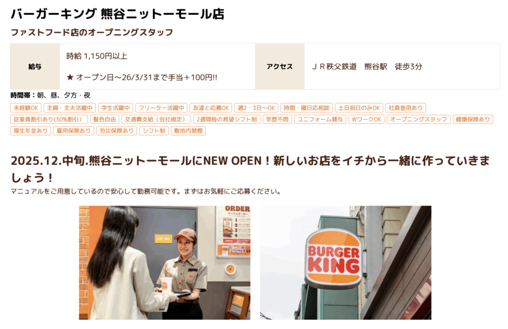 ◆店舗名/バーガーキング 熊谷ニットーモール店