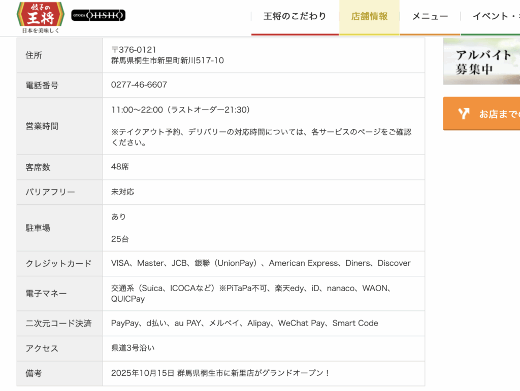 桐生市新里町新川に「餃子の王将 新里店」がオープンしたみたいです。