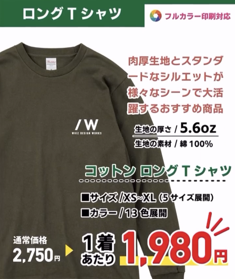 ◆キャンペーン内容/ロングTシャツを通常価格2,750円(デザイン&プリント&ウェア代込み)のところを→1,980円(税込)で製作します!