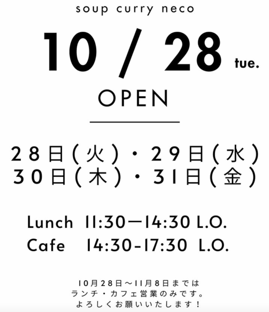 深谷市東大沼にスープカレーのお店「soupcurry neco Fukaya」がオープンするみたいです。