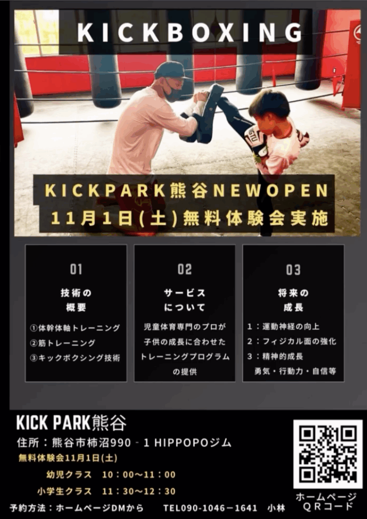 熊谷市柿沼にキックボクシングスクール「KICK PARK 熊谷」がオープンするみたいです。