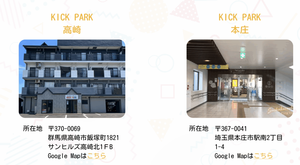 「KICK PARK」は、本庄市・高崎市・前橋市などで展開するキッズスポーツスクール