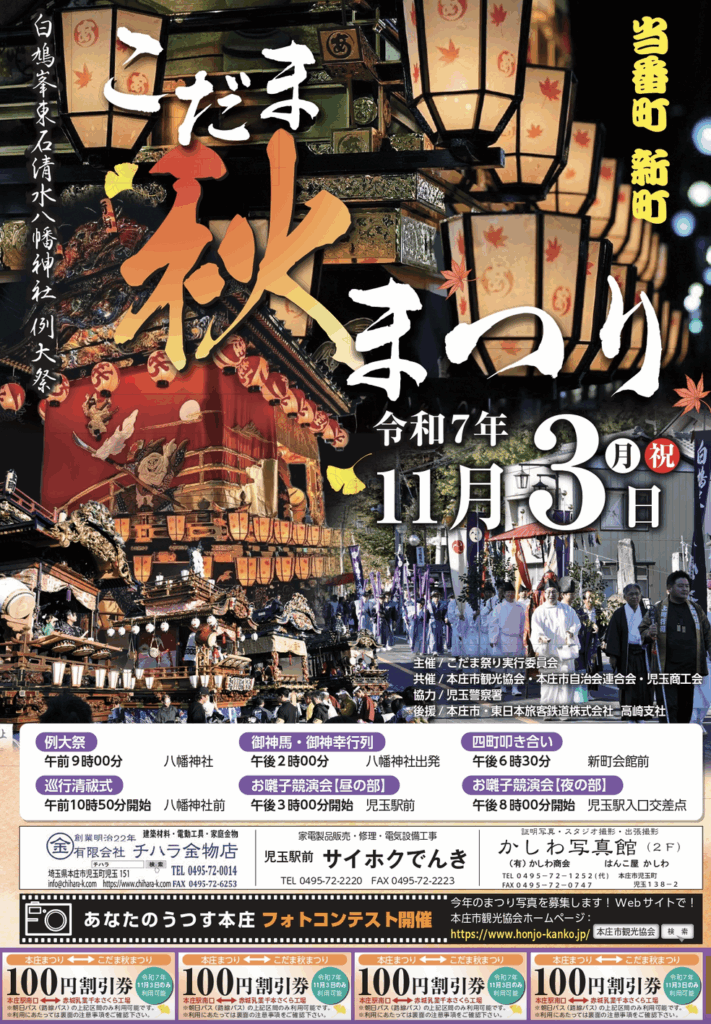 11月1日(土)〜3日(月・祝)に埼北エリア周辺で開催されるイベントをまとめてみました💡