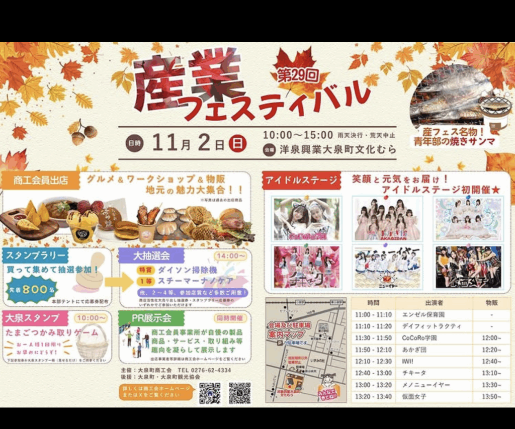 11月1日(土)〜3日(月・祝)に埼北エリア周辺(群馬県南部)で開催されるイベントをまとめてみました💡