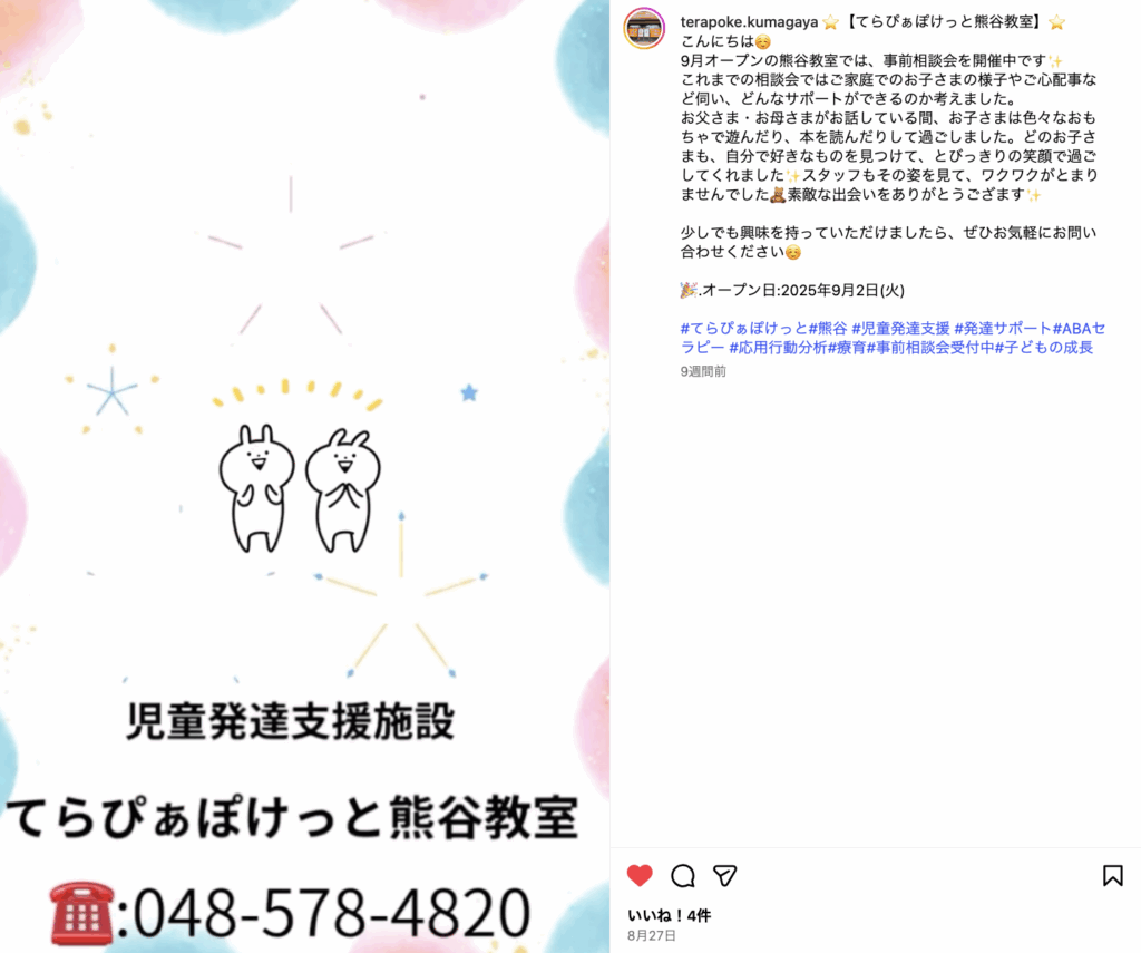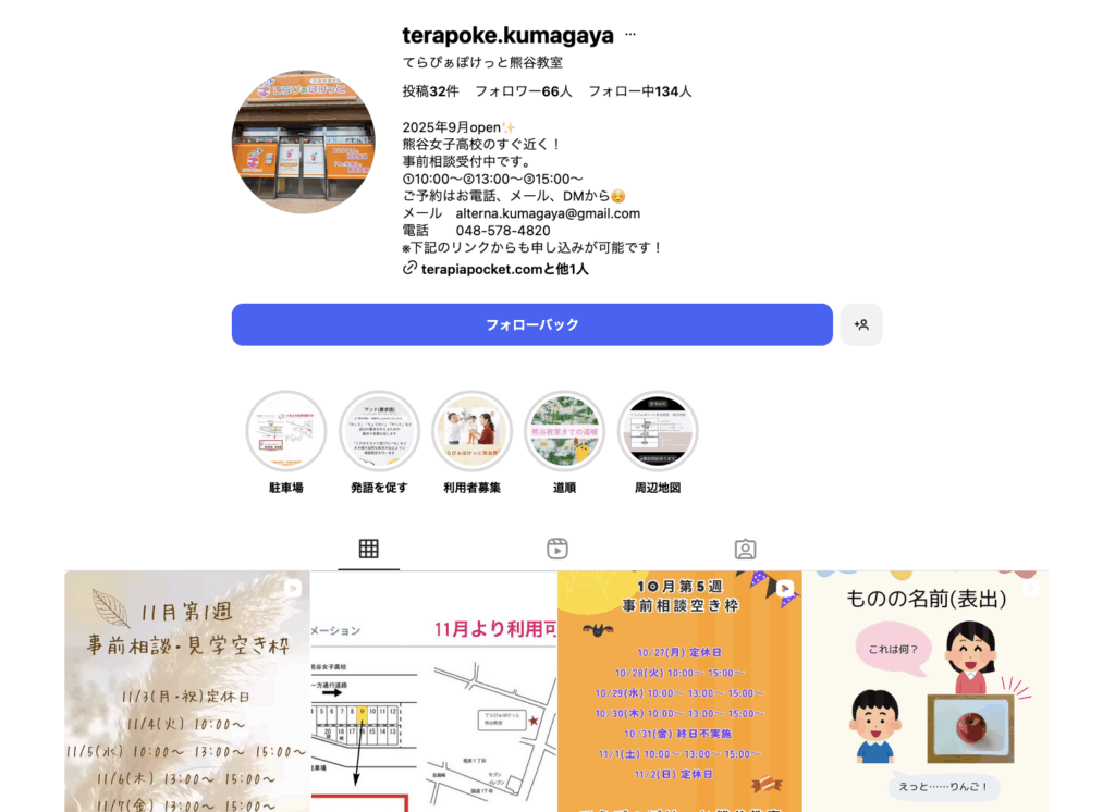 「てらぴぁぽけっと熊谷教室」の最新&詳細情報は、「Instagram」や「ブログ(発達ナビ)」でご確認ください📲