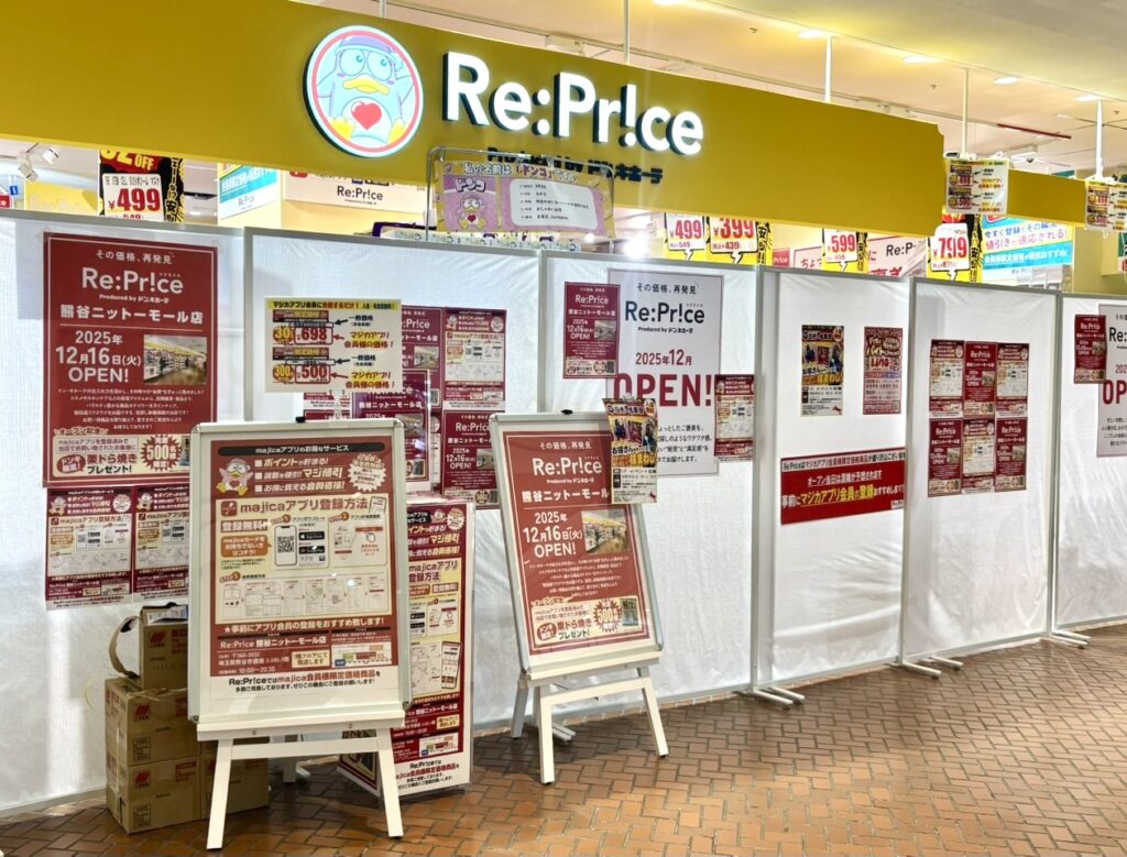 熊谷市銀座にある「ニットーモール」内にドン・キホーテの新業態店舗「Re:Price(リプライス)」がオープンするみたいです。