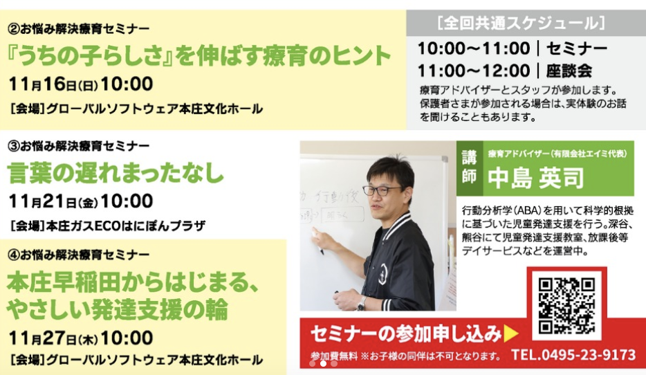 オープンを記念して本庄市内で全4回の参加費無料の「特別療育セミナー」を開催します✨