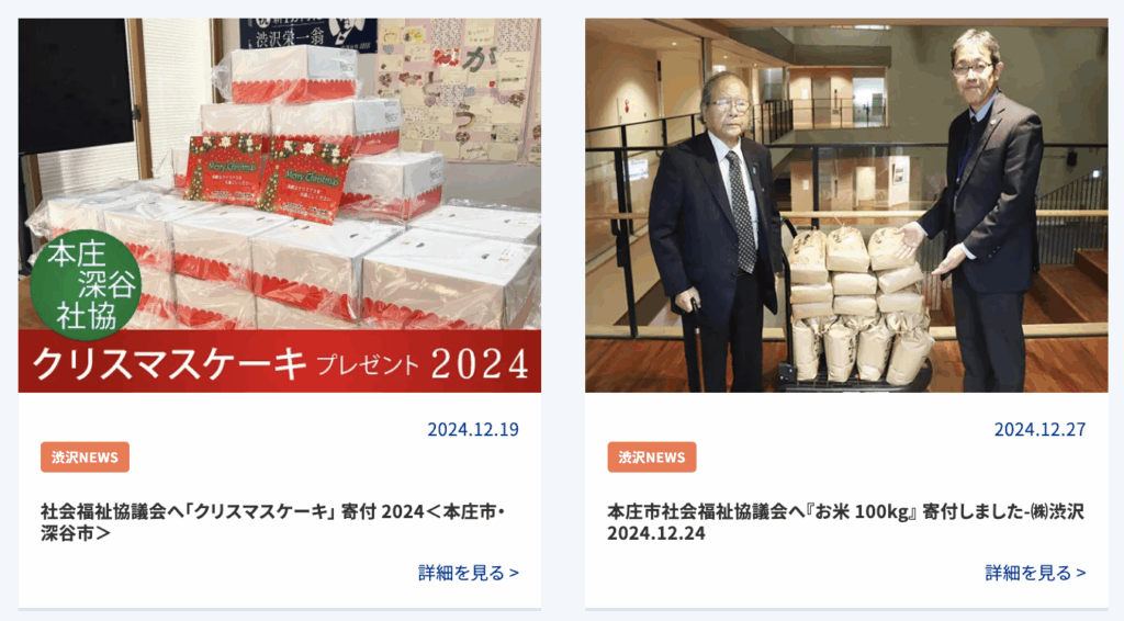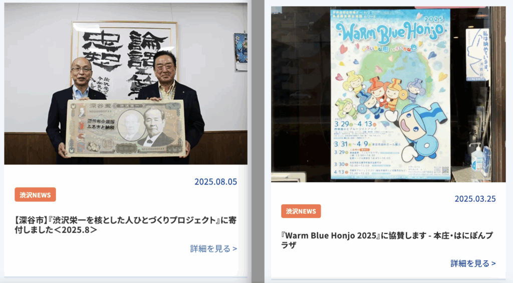 株式会社渋沢」の取り組みや支援活動は、ホームページ内にある「渋沢NEWS」で随時更新しているので、是非チェックしてみてください📲