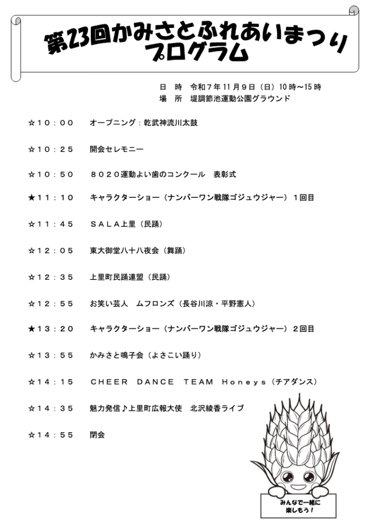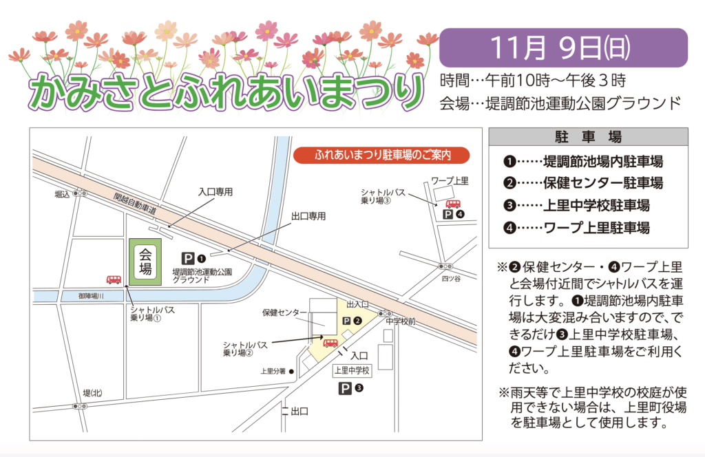 上里町「堤調節池運動公園グラウンド」で『第23回 かみさとふれあいまつり』が開催されます。