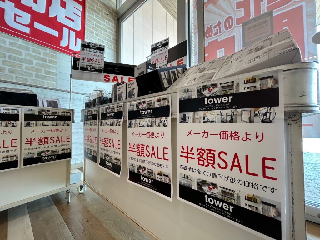 あっ、これがメールに書いてあった「陶器市」と「towerの半額セール」か!