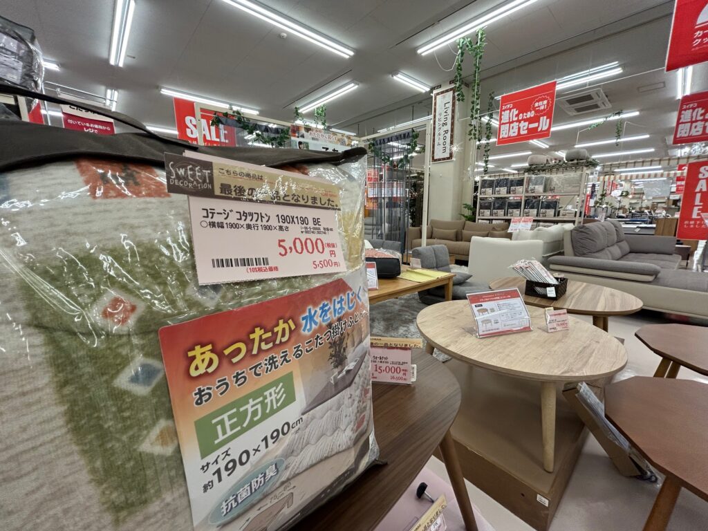 もうすぐ冬になるということもあり、「カーペット」「羽毛布団」「こたつ」などがオープン以来記録したことのないほど売れていますね✨