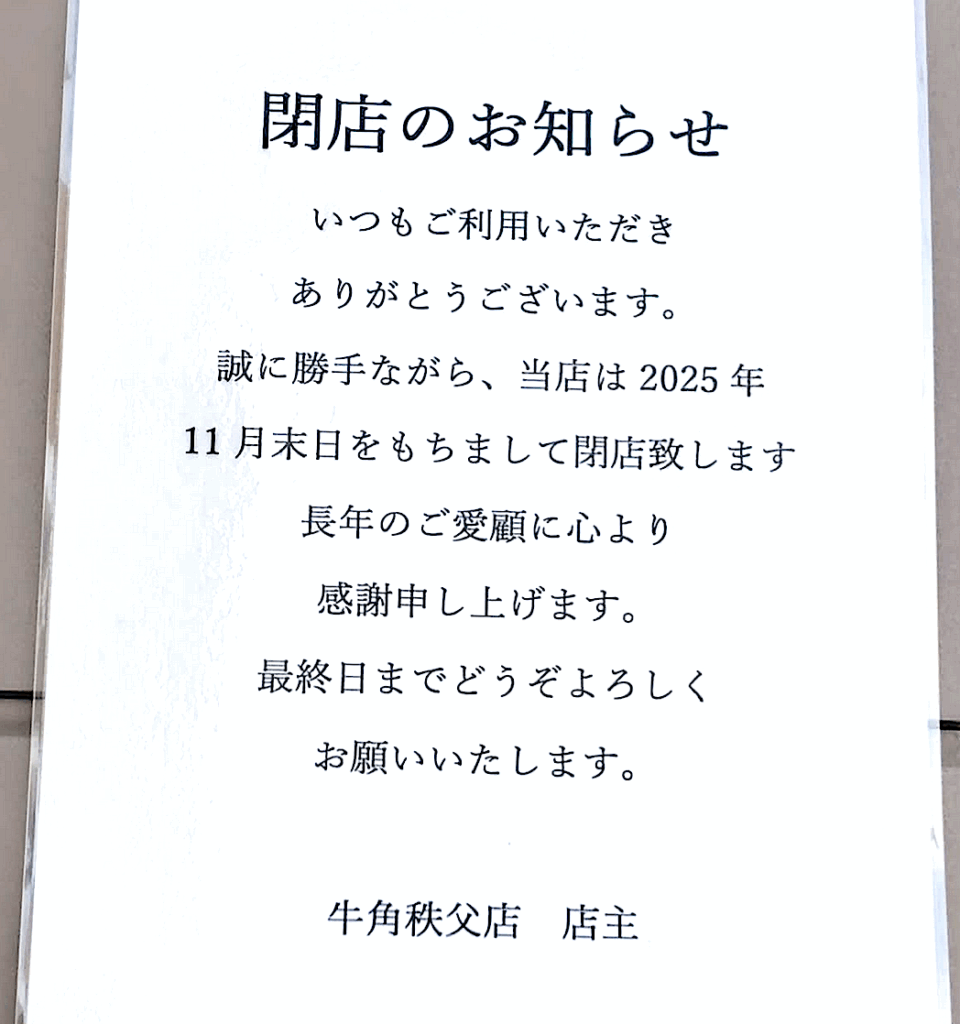 秩父市上野町にある「牛角 秩父店」が閉店するみたいです。