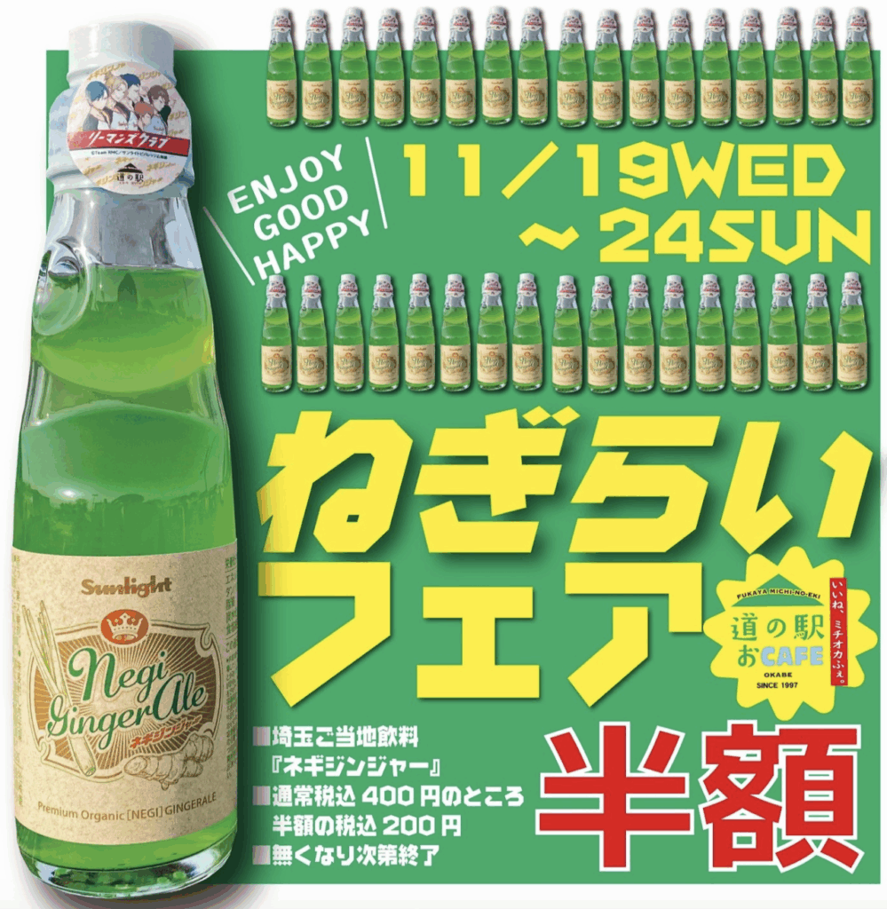 アニメ「リーマンズクラブ」にも登場した埼玉ご当地飲料「ネギジンジャー」を半額で期間限定販売します❣️