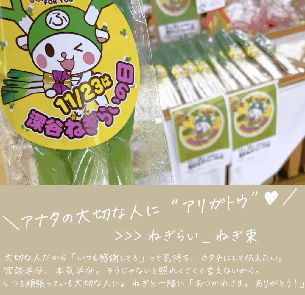 11月23日「深谷ねぎらいの日」は、大切な人に『ありがとう』を伝える日であるとともに、待ちに待った「深谷ねぎ」のおいしい季節のはじまりをお知らせするための特別スペシャルDAY✨