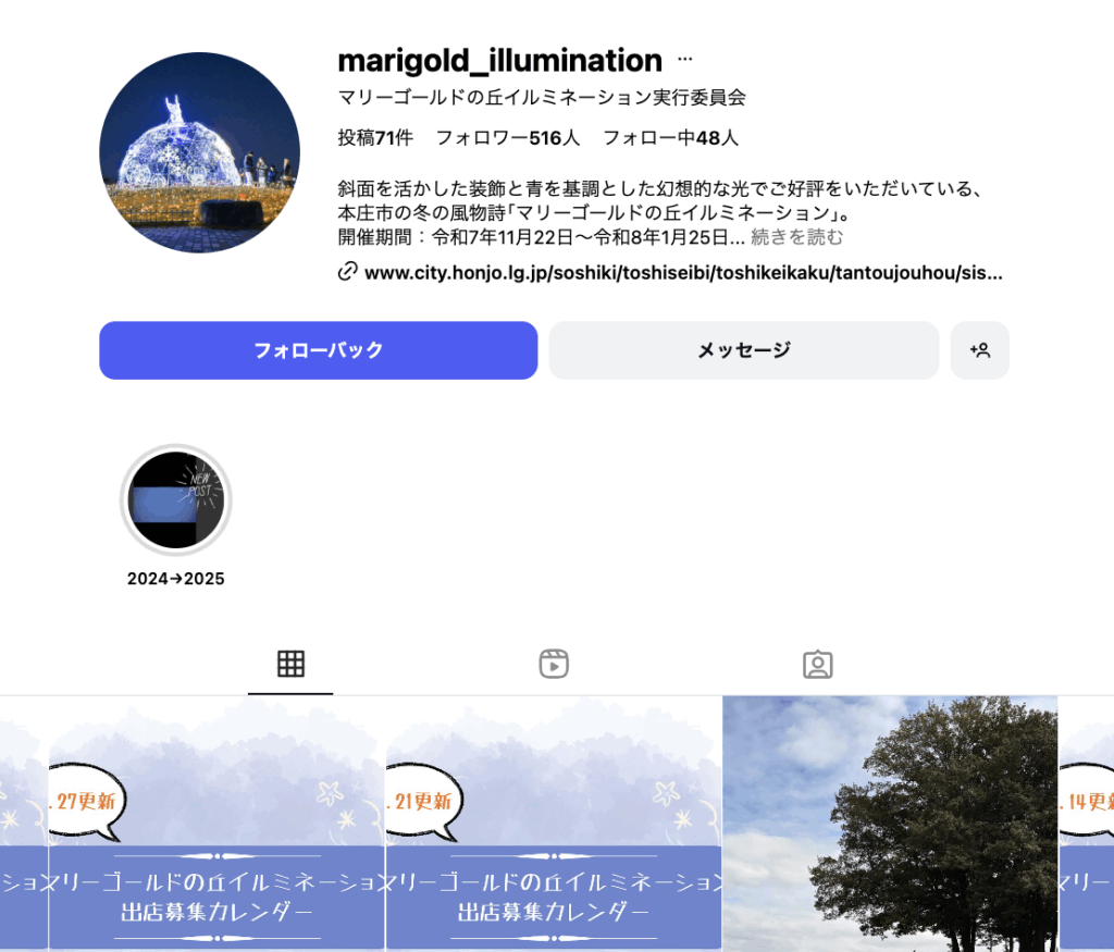 関連最新情報は、「マリーゴールドの丘イルミネーション実行委員会」のInstagramでチェックしてみてください↓
