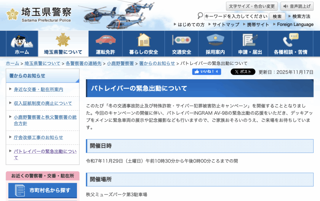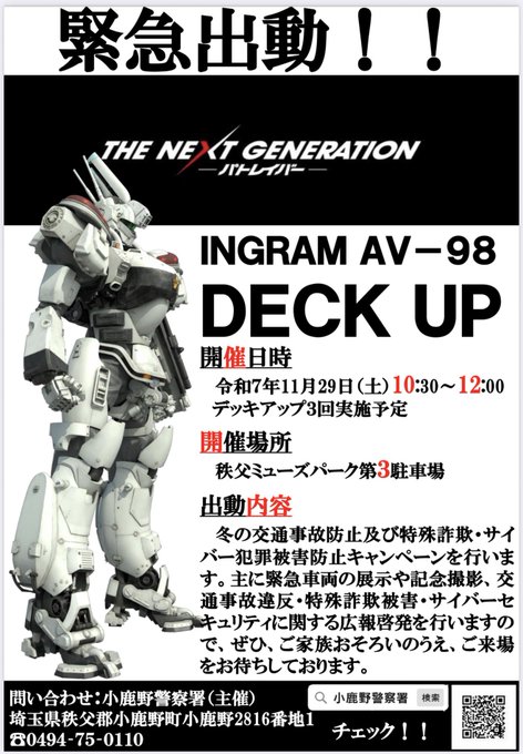 「冬の交通事故防止及び特殊詐欺・サイバー犯罪被害防止キャンペーン」の開催に伴い、パトレイバーINGRAM AV-98が緊急出動!…