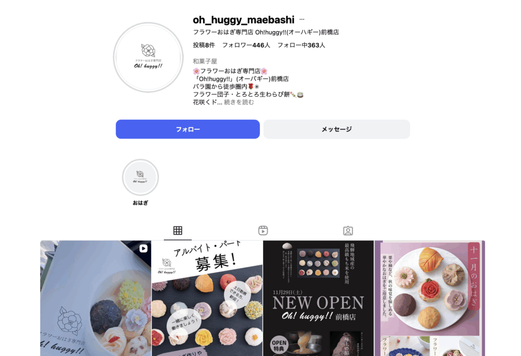 前橋市川原町にフラワーおはぎ専門店「Oh!huggy!! (オーハギー)前橋店」がオープンしたみたいです。