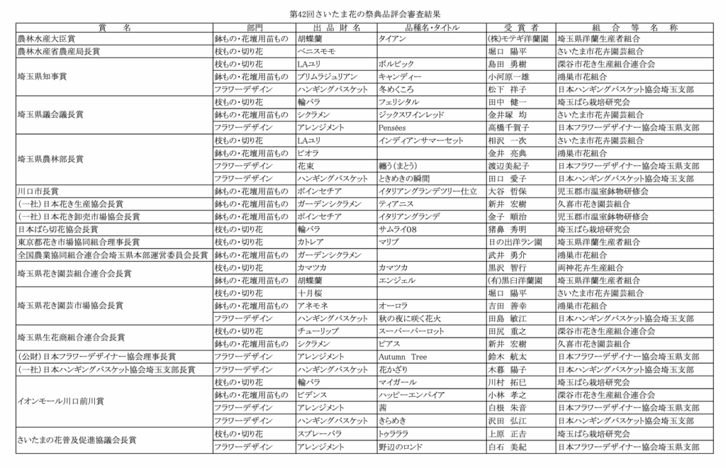 「第42回さいたま花の祭典評定会審査結果」はコチラ↓